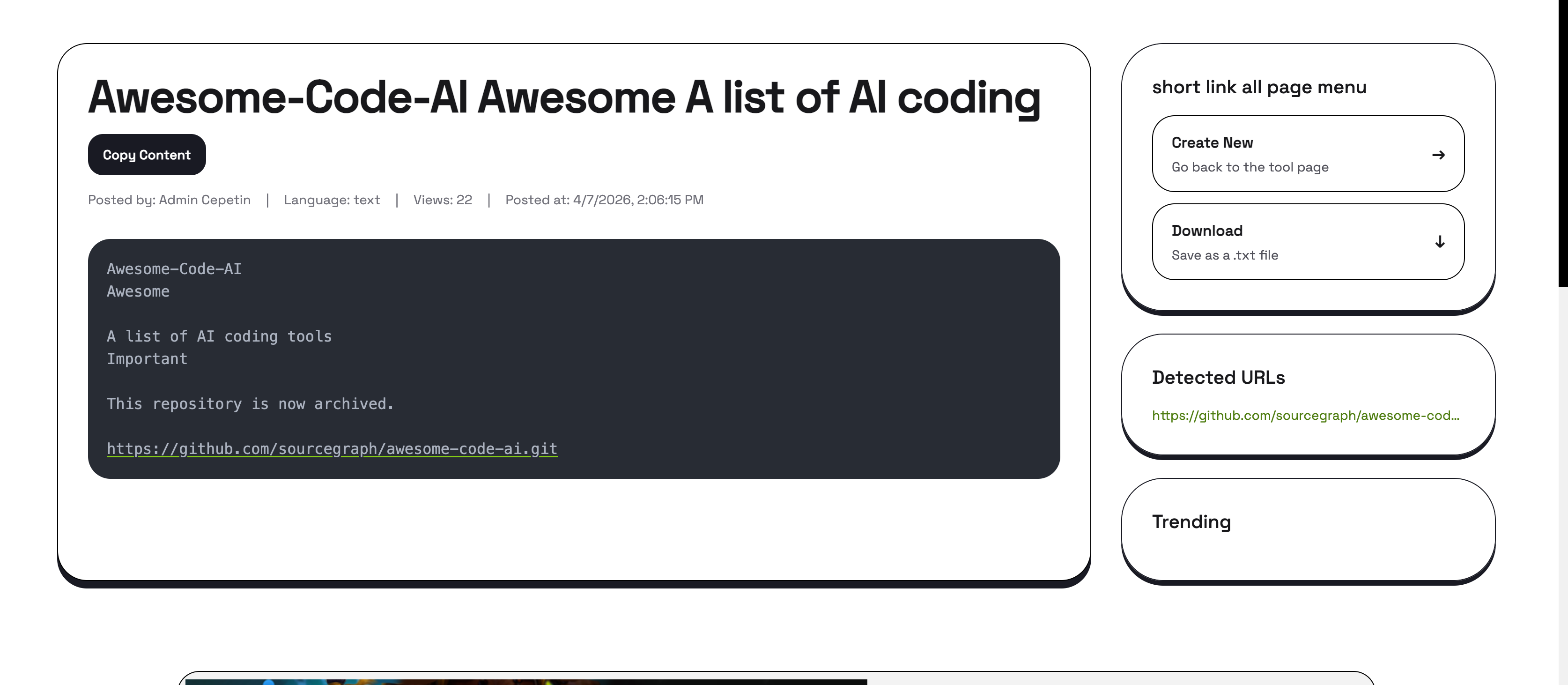 Short URL All Page (Text Sharing)