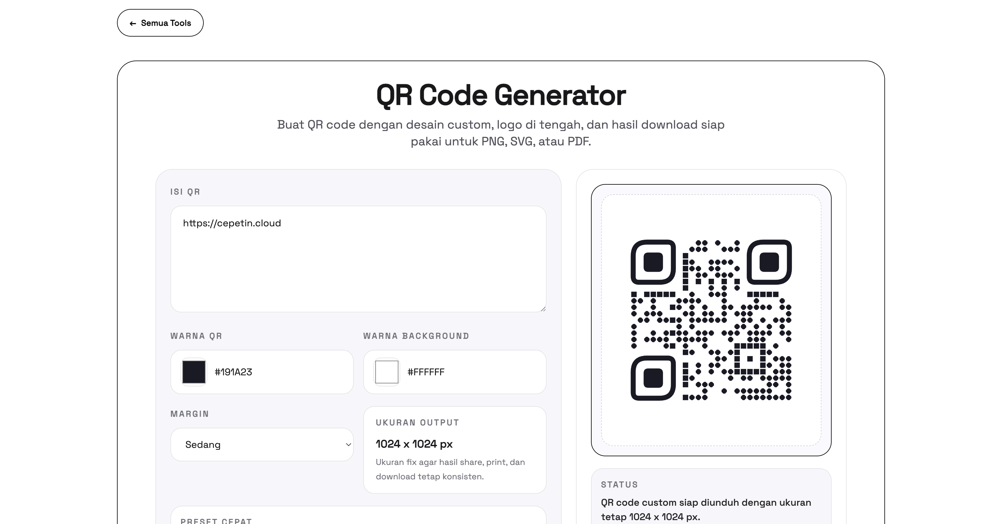 - Buka halaman QR Code Generator di Cepetin Cloud
